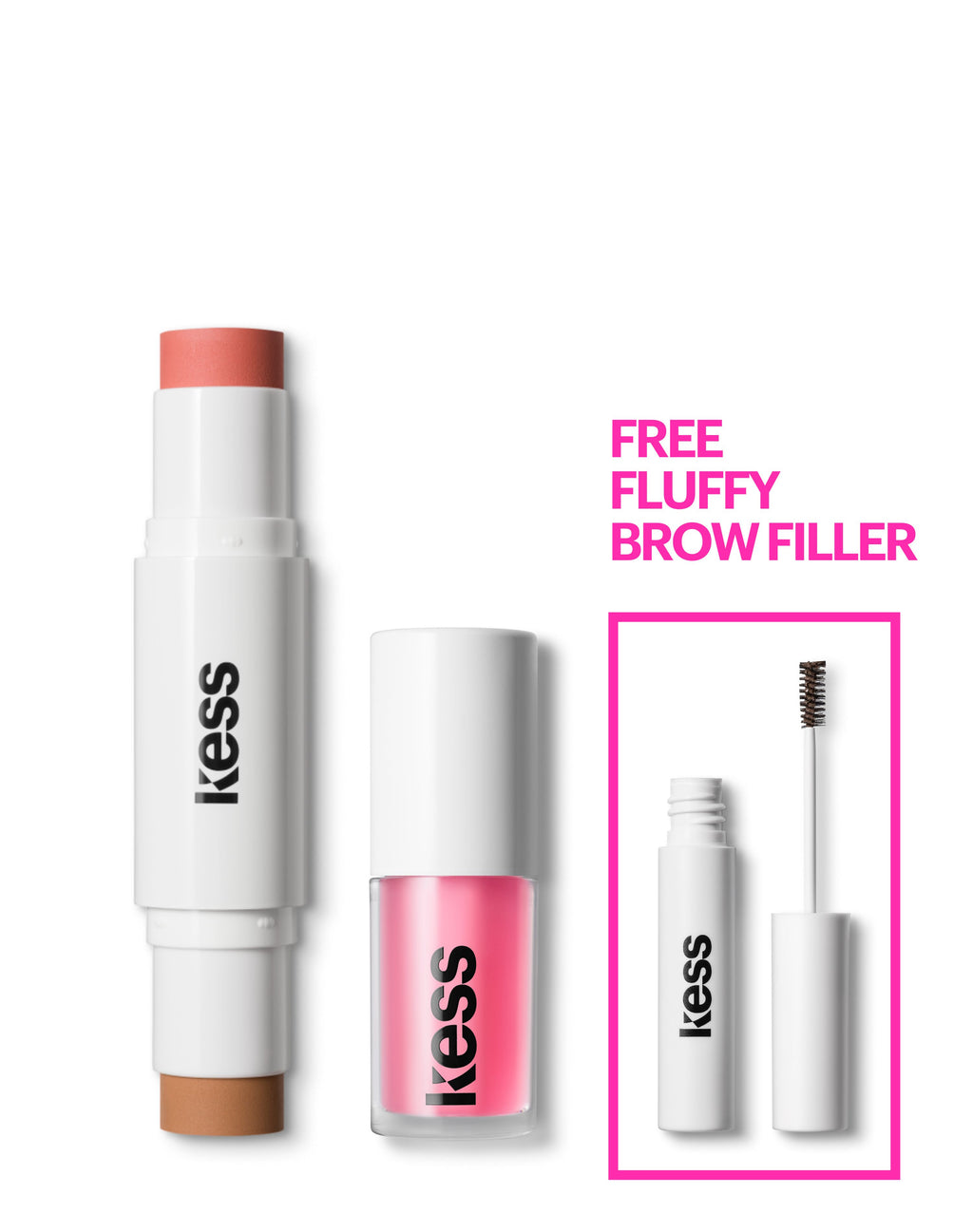 Two essentials, the perfect look: fresh pops of colour on cheeks, lips and eyes with the Blush & Glow Duo Stick, plus deeply nourished, glossy lips with the Jelly Treat Lip Oil. Rounded off with the Fluffy Brow Filler, as a free gift on top. Ready to party? Say no more.