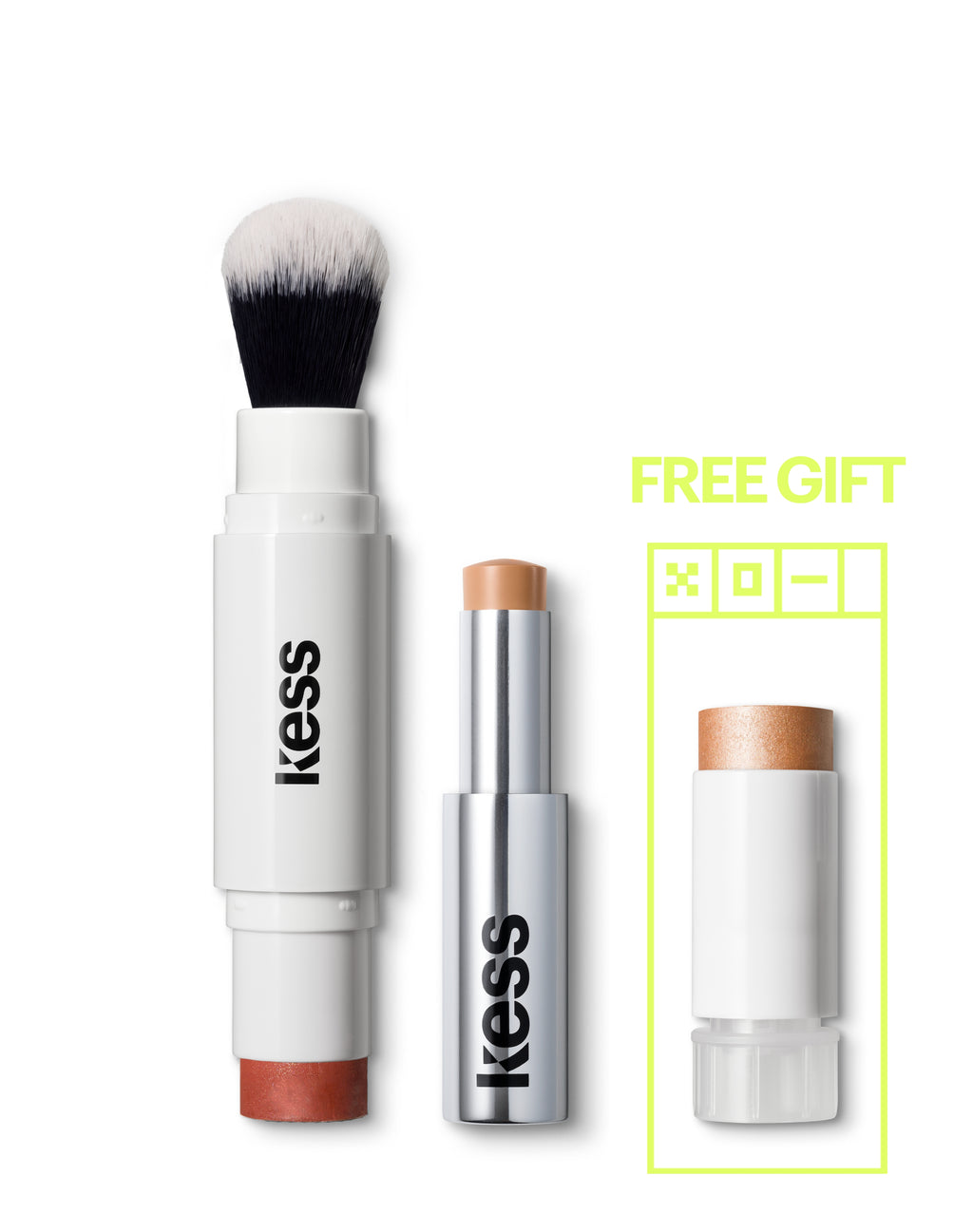 Free with this set: Blush & Glow Refill – choose from blush, highlighter or click-in brush.